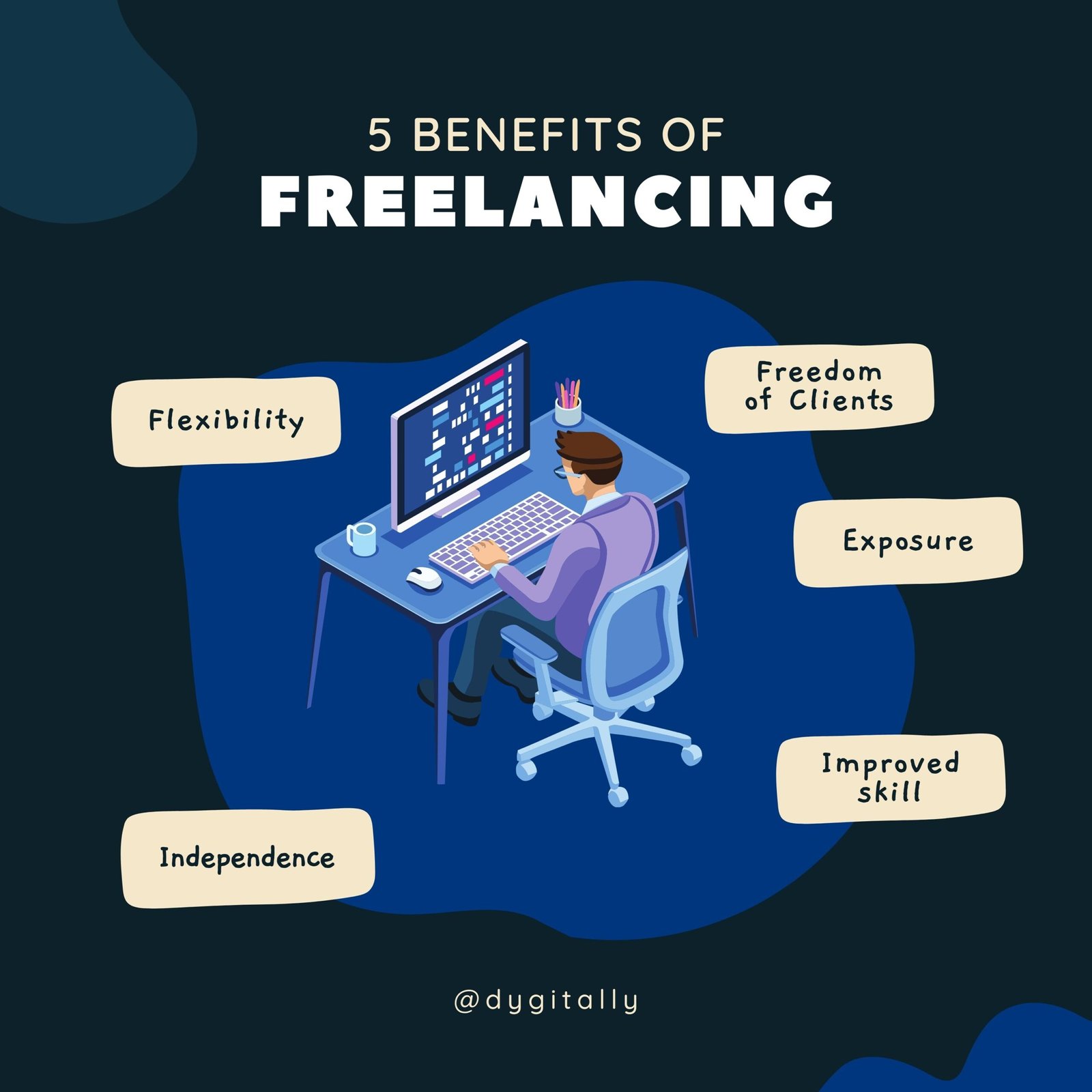 Freelancing offers flexibility, varied projects, and the potential for high income, but requires self-discipline and strong self-promotion skills.